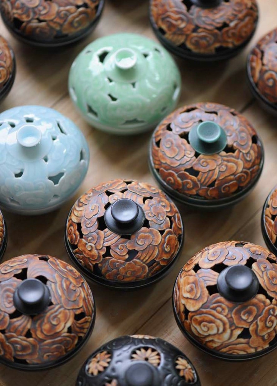 近代,随着士大夫精神的陨落,对香的迷恋也日渐式微。近代的陶瓷香炉多为仿古之作,未有大量的生产和研究。反而香之艺术开始在日本盛行,成为所谓的“香道”。在香道的复兴中,有年轻陶艺家的创作始终循着灵动之香路。